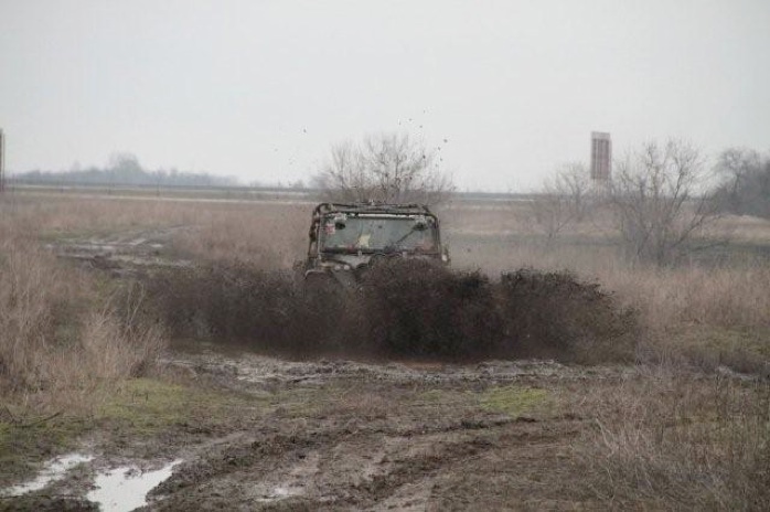 A korán leadott jelentkezésnek hála 5.-nek indulhattunk el a rajtkor. Néhány km után értünk a Gyuris tereptanyára, ahol az első speciál feladat volt. Szvsz ez a spec inkább TKP-nak kellett volna lennie, hisz csak egy vizes gödör volt, ahonnét mindenknek ki kellett magát csörlőznie - mindegy...